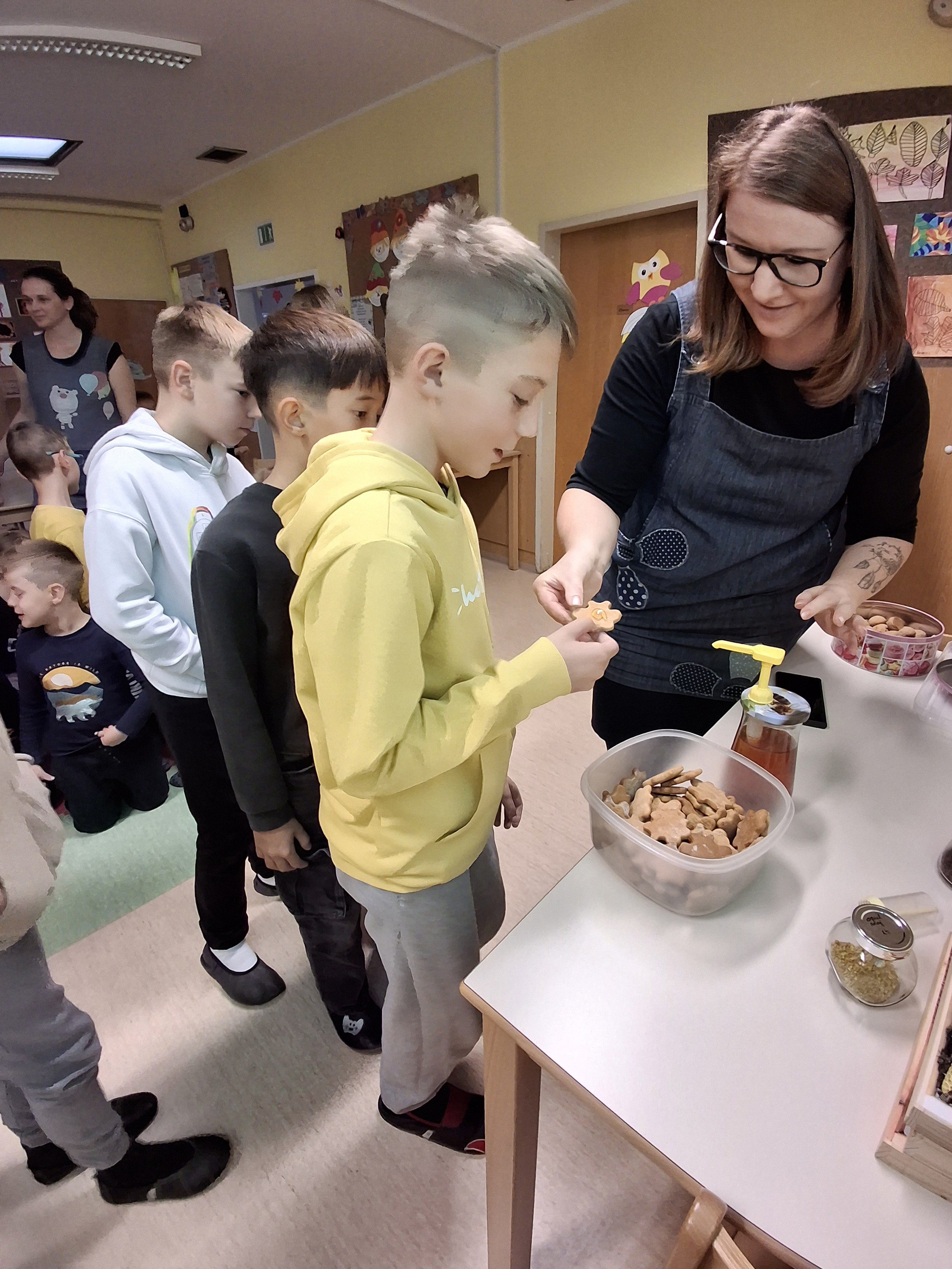 V petek, 21.11. 2025 pa smo imeli naravoslovni dan, ki smo ga pričeli z zdravim zajtrkom ( kruh z orehi, maslo, med, mleko in jabolko). Učenci v jutranjem dežurstvu so za nas pripravili še medenjake, s katerimi smo se malo posladkali.