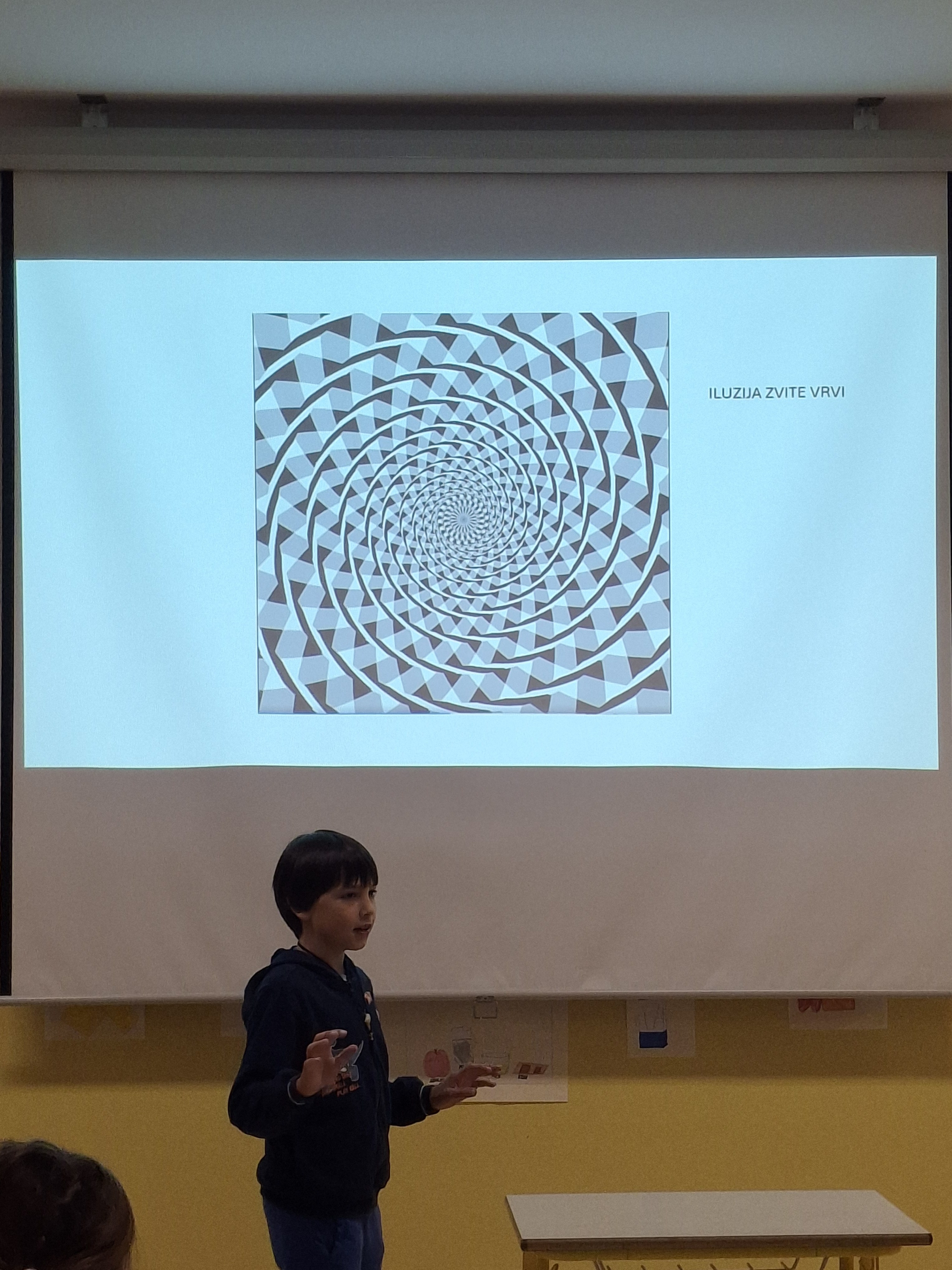 Nato pa nam je učenec 5. razreda Franci Lipnik predstavil zanimivosti o obtičnih iluzijah. Vsi smo ga z zanimanjem poslušali in nekatere stvari praktično tudi preizkusili.