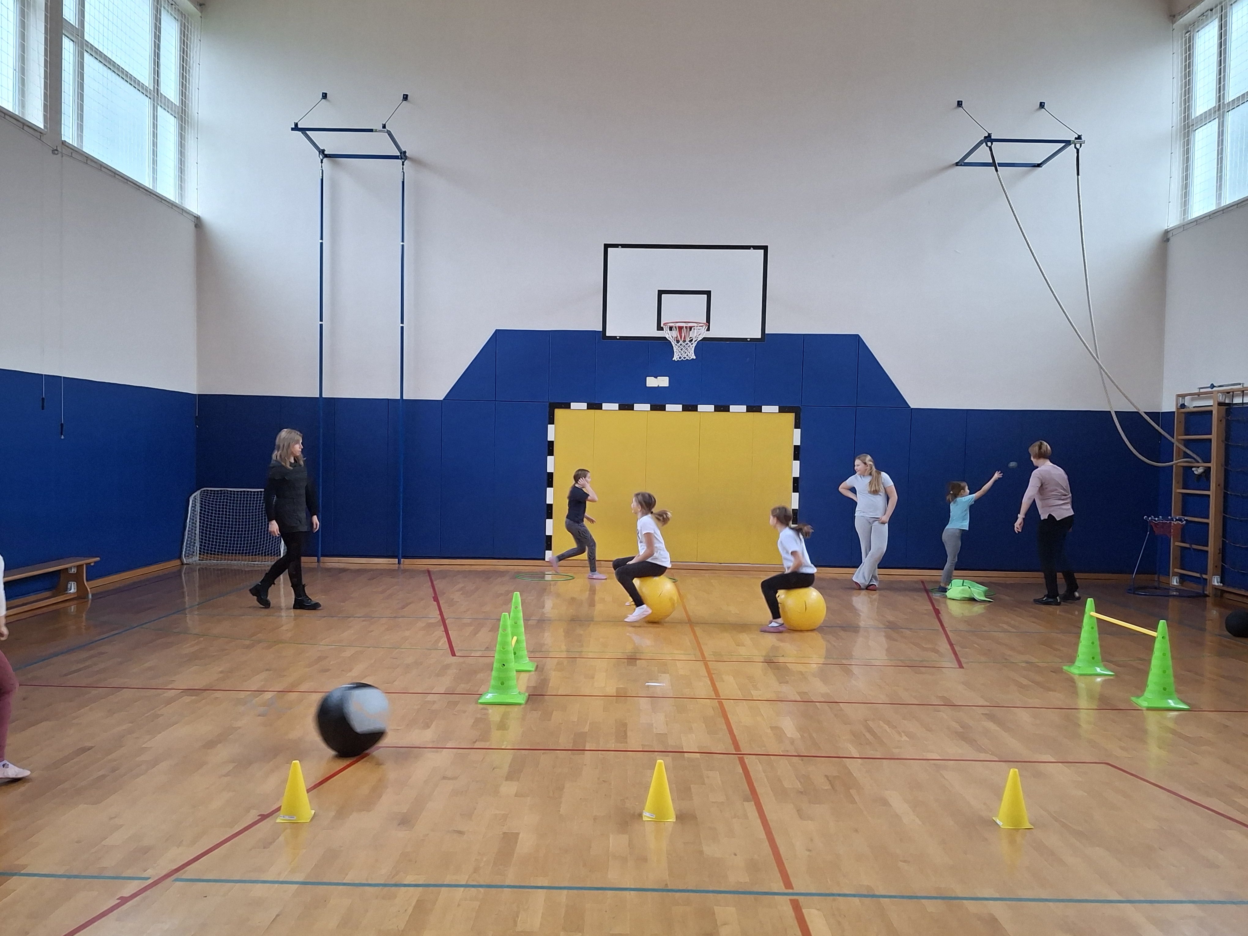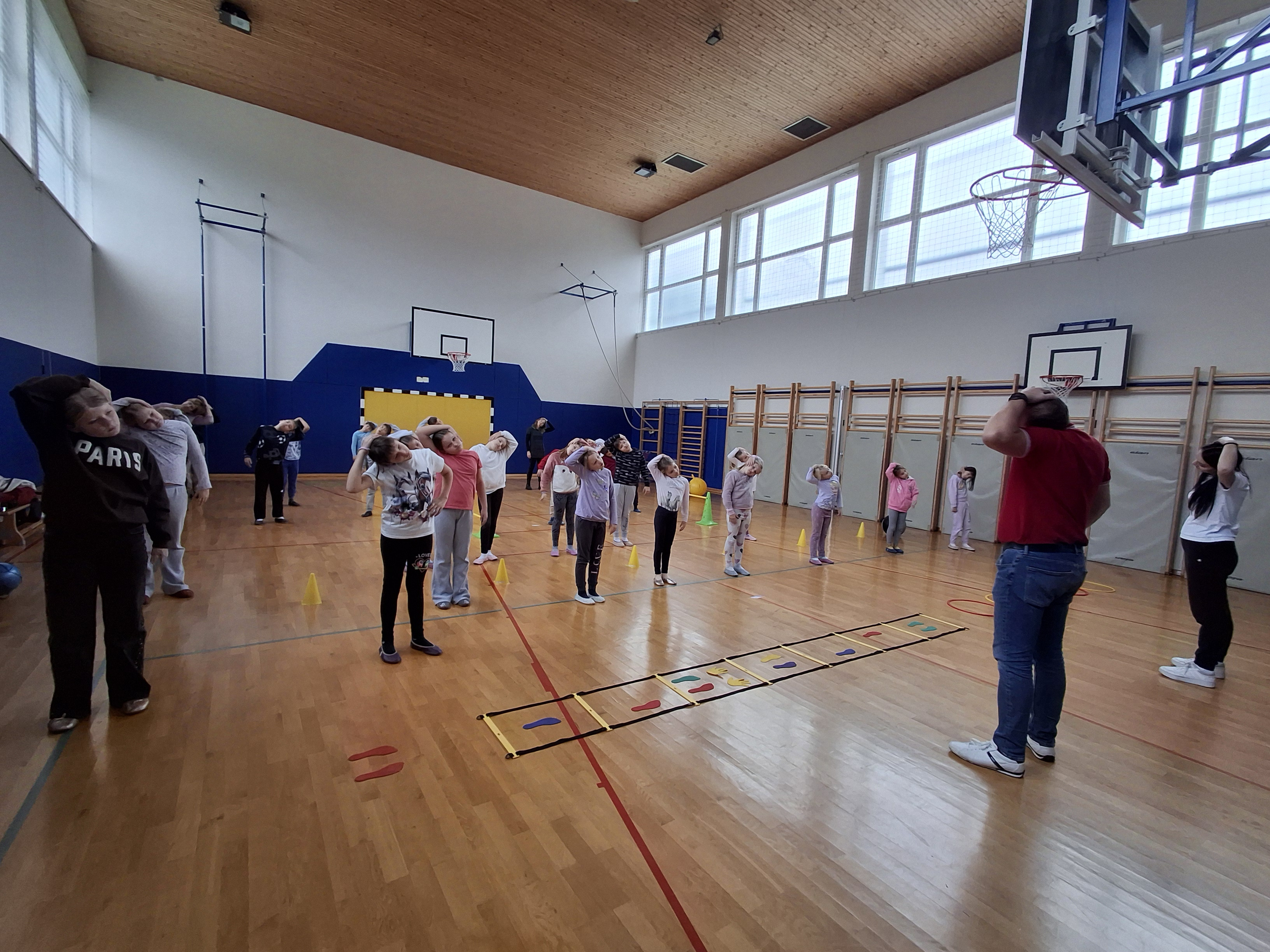 Dan smo nadaljevali v telovadnici s športom za zdravje, ki sta ga izvedla g. Jernej in ga. Lucija iz CKZ Šentjur. Najprej smo se dobro razgibali, potem pa izvajali gibalne aktivnosti z različnimi športnimi rekviziti. Zelo smo se zabavali.