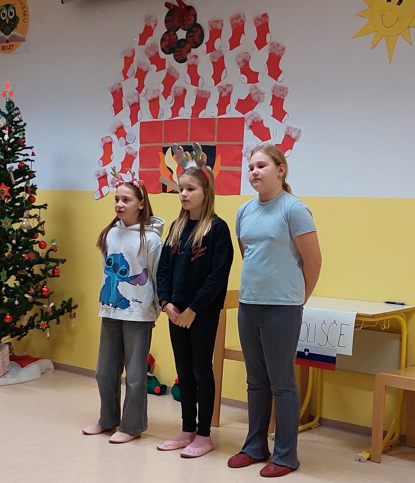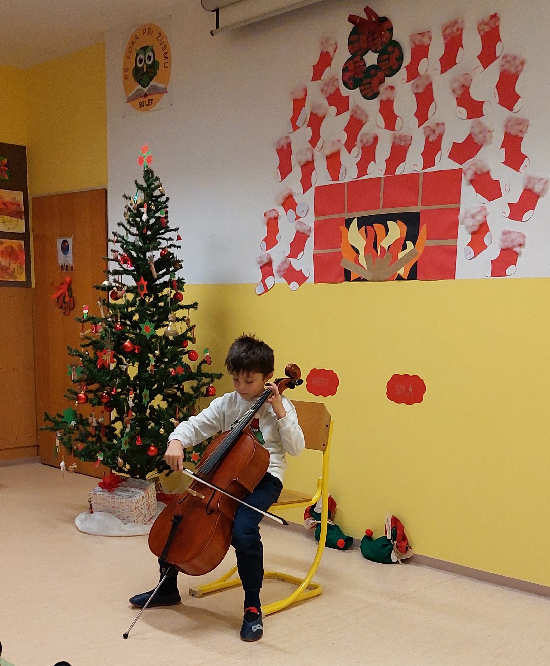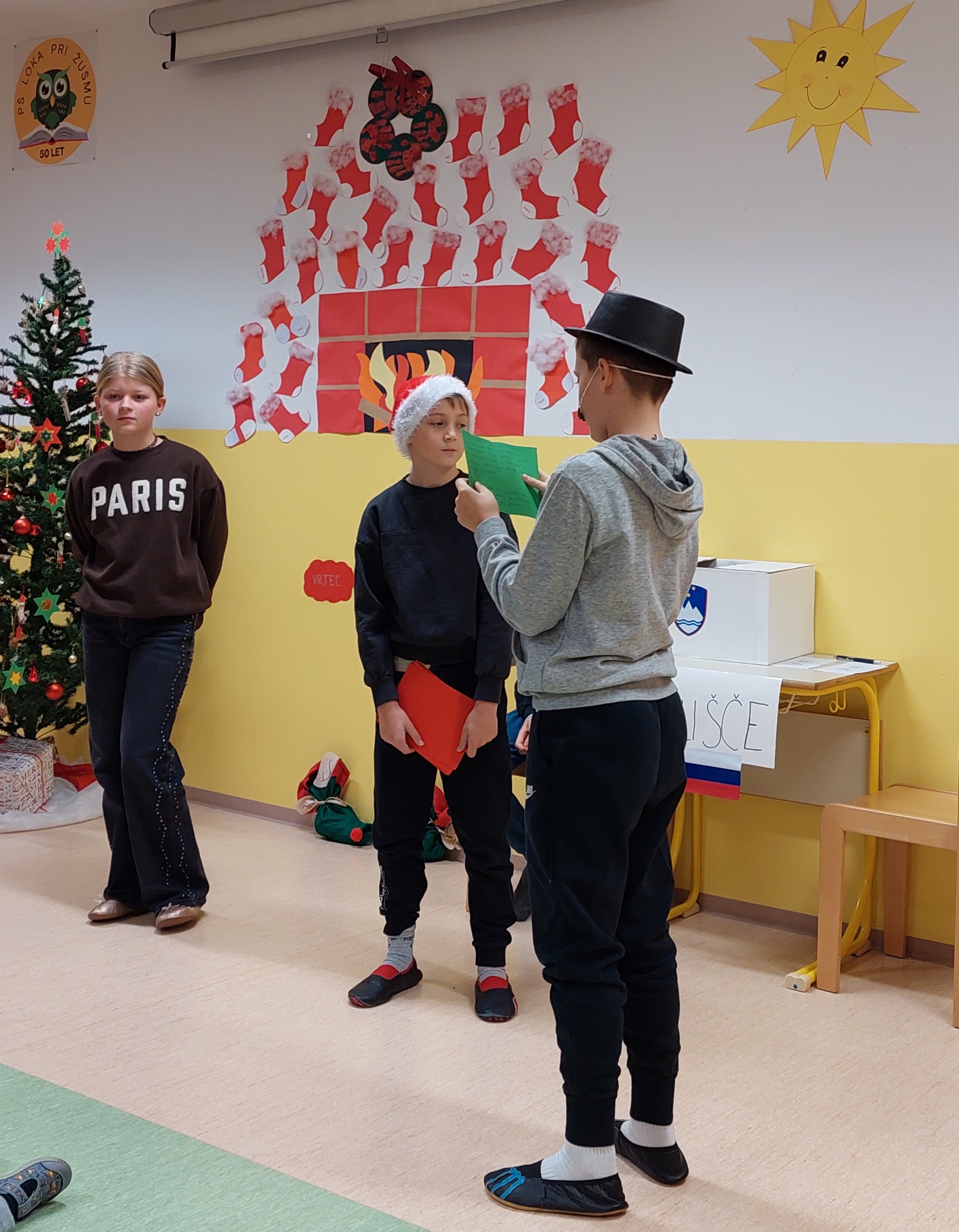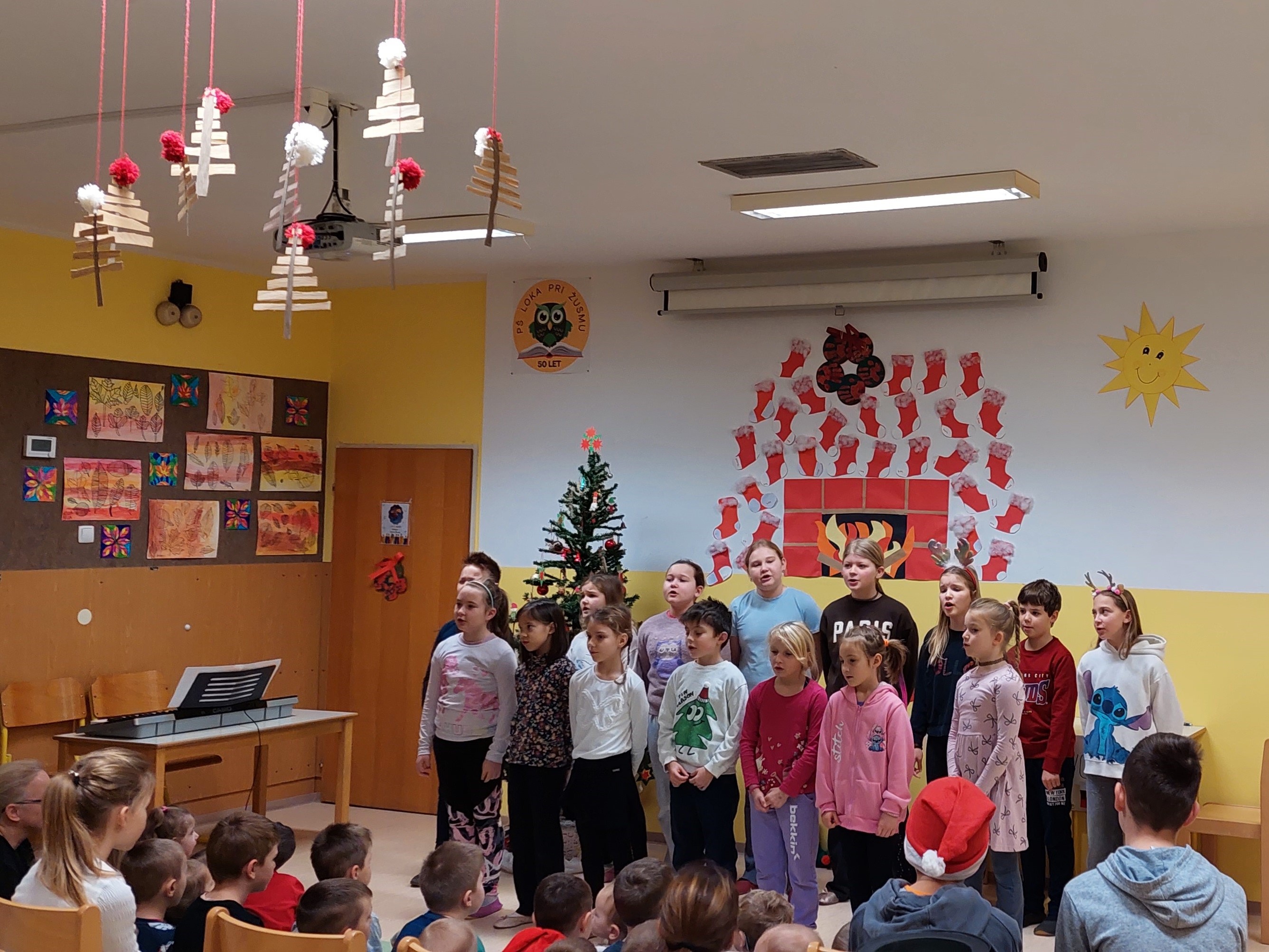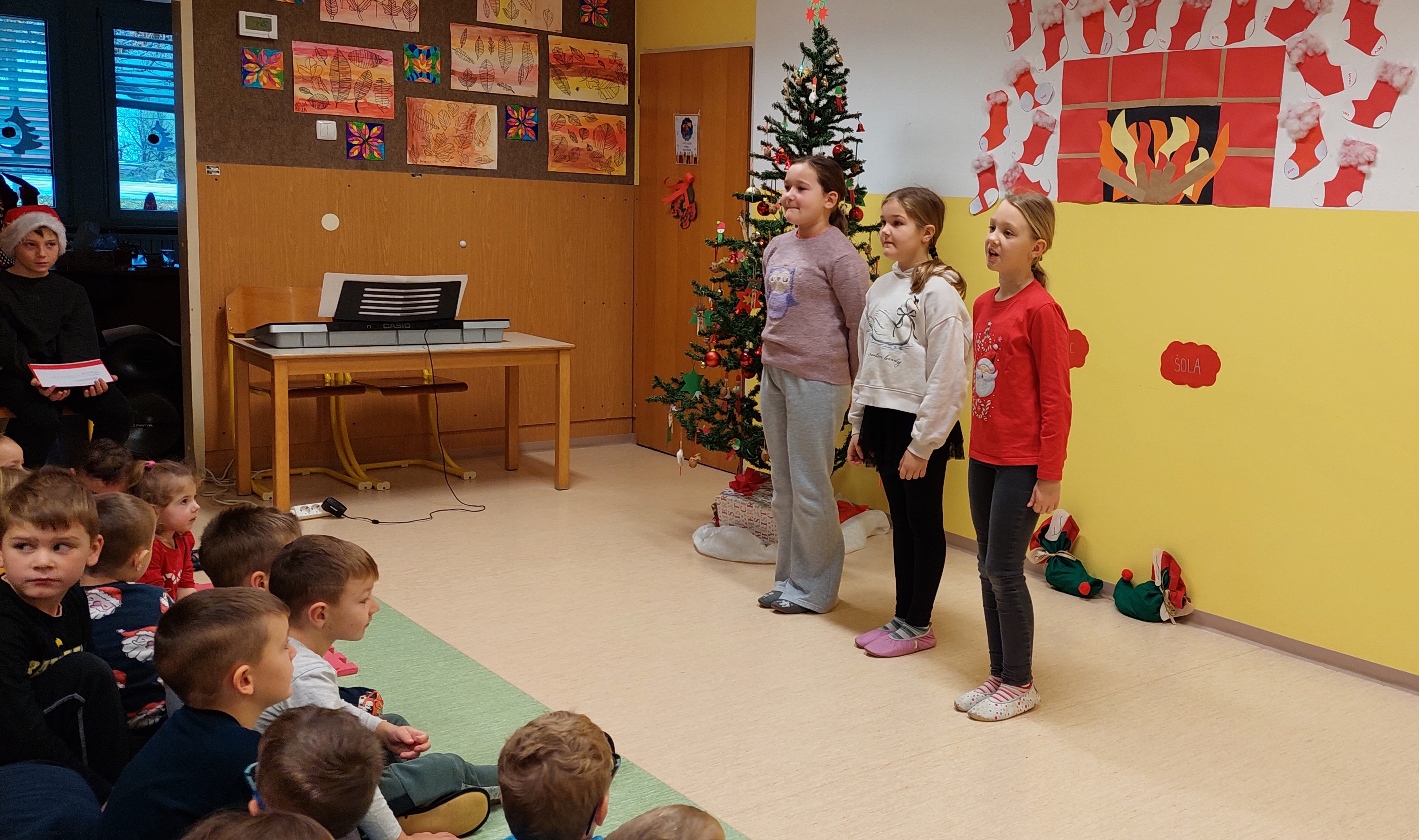 Božično-novoletni prazniki so pred vrati, zato smo v torek, 23. 12. 2025, kot uvod v ta praznični čas v šoli pripravili prireditev, ki sta jo spretno vodila petošolca Mija in Filip.