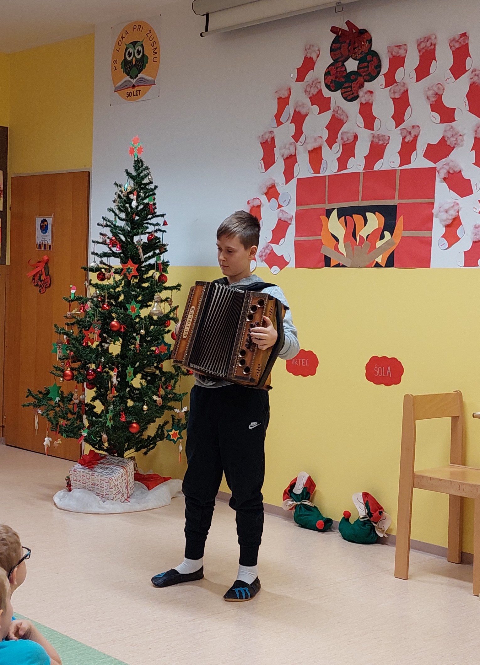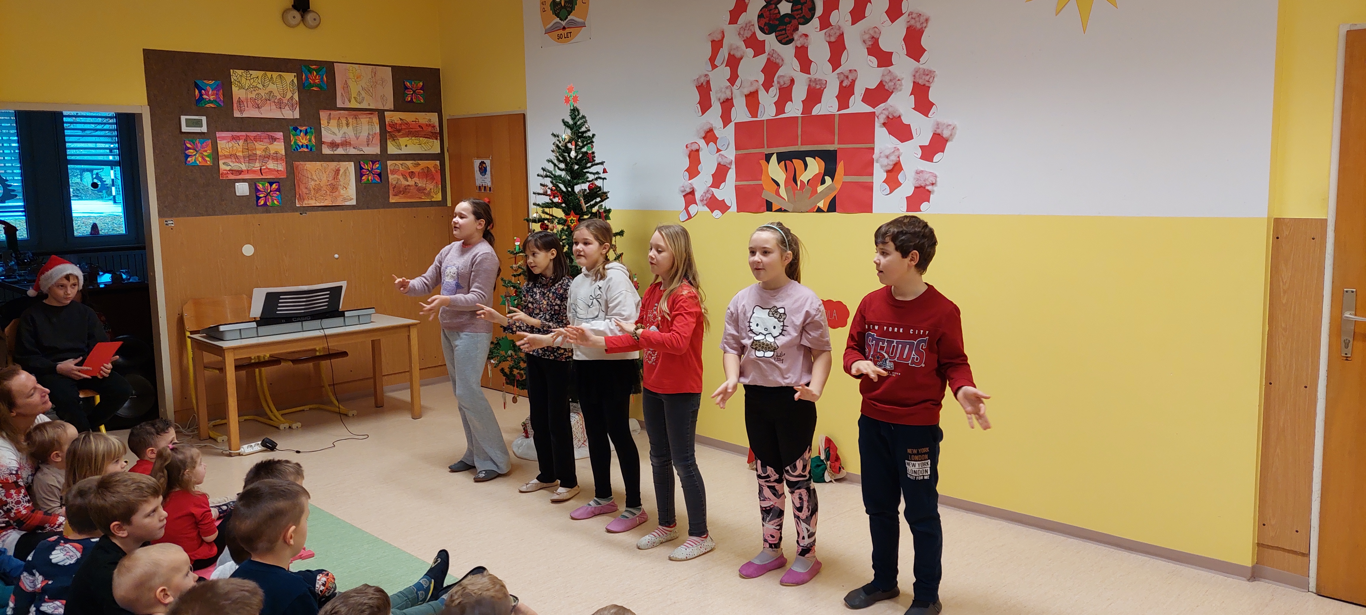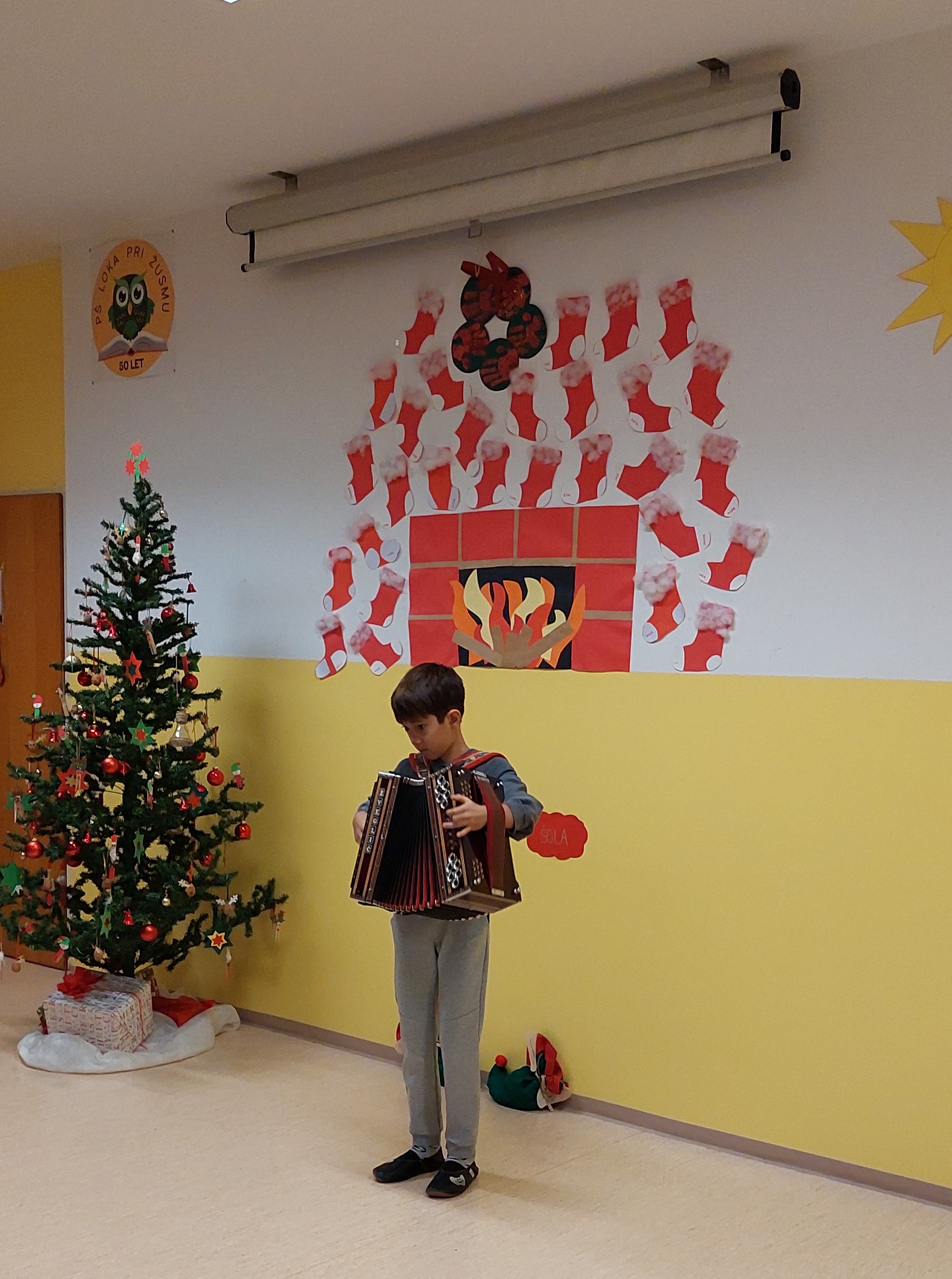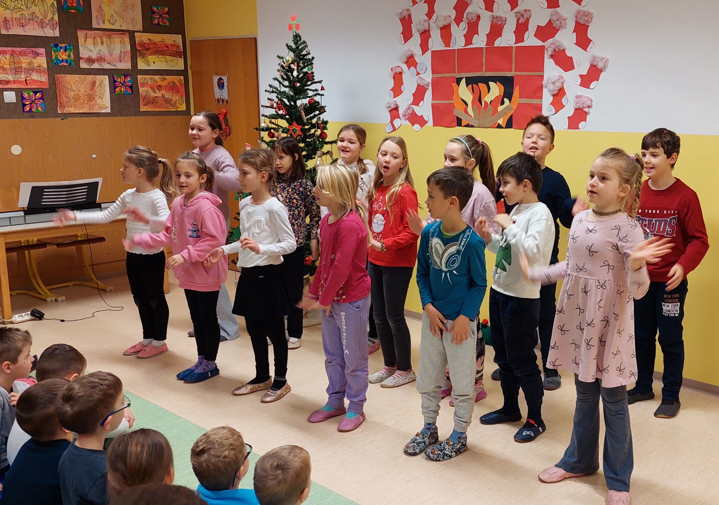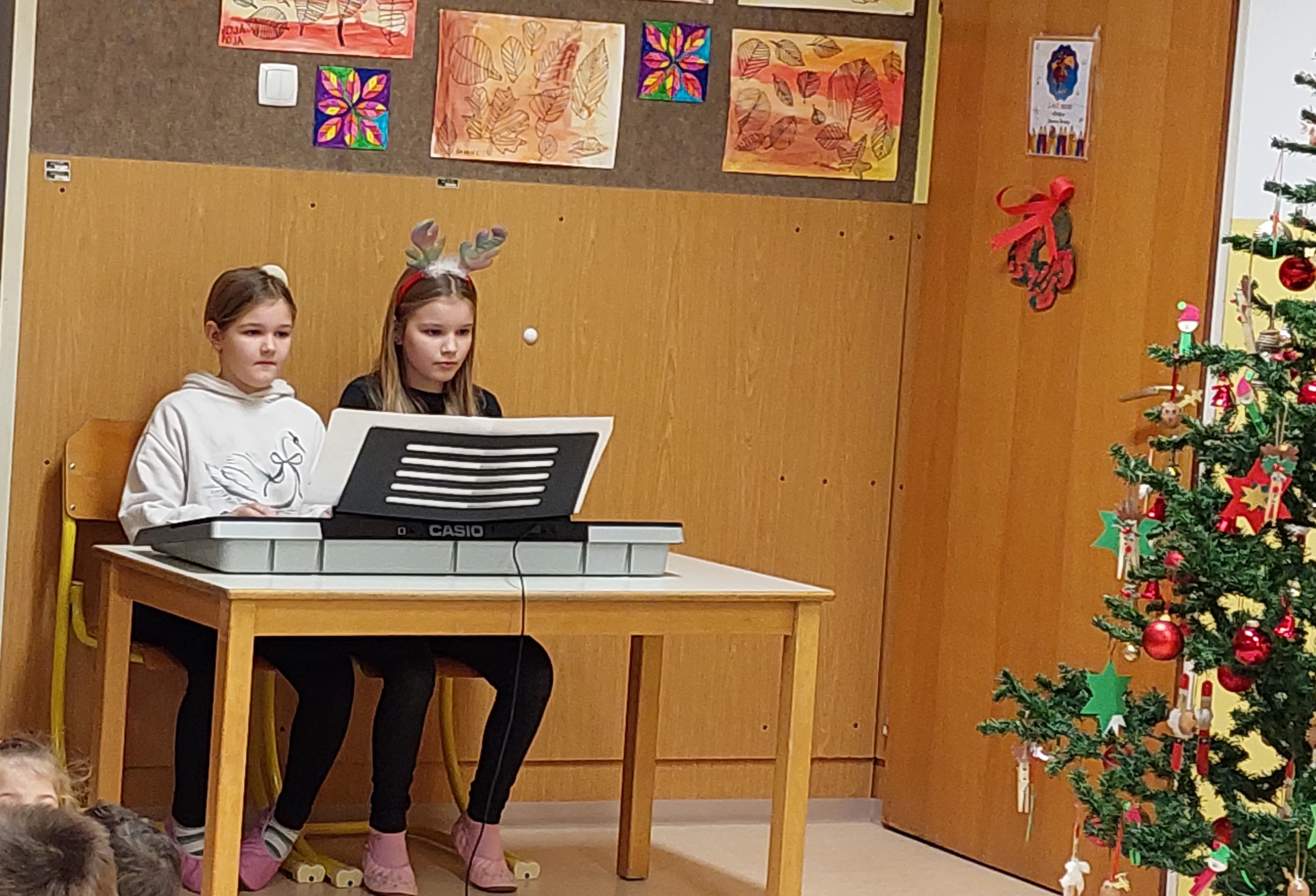 Božično-novoletni prazniki so pred vrati, zato smo v torek, 23. 12. 2025, kot uvod v ta praznični čas v šoli pripravili prireditev, ki sta jo spretno vodila petošolca Mija in Filip.