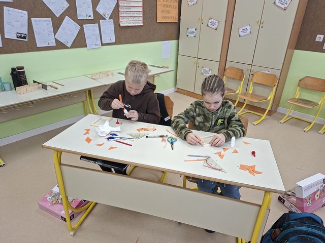 Les in lepenka sta bila glavna materiala, s katerima so četrtošolci na tehniškem dnevu ustvarjali svoje prve »inženirske« projekte. Njihova naloga je bila izdelati voziček na notranji pogon – in pri tem so se naučili marsikaj novega.
