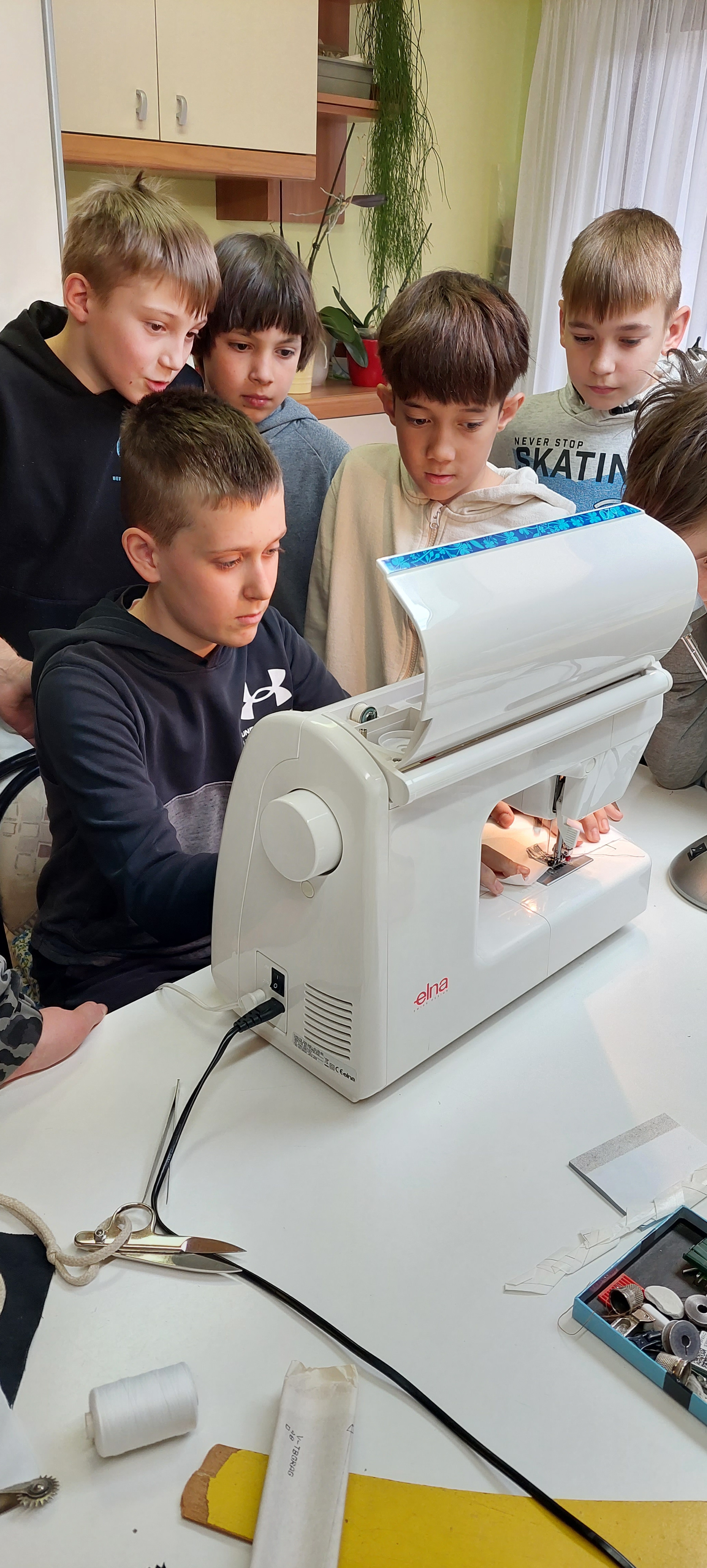Po končanem šivanju smo se posladkali še s piškoti in sokom. Kmalu smo morali oditi nazaj v šolo. Pri gospe Vidi smo se imeli res krasno. Ugotovili smo, da je šivanje težje kot se zdi in upamo, da bomo še kdaj lahko odšli h kakšni šivilji.