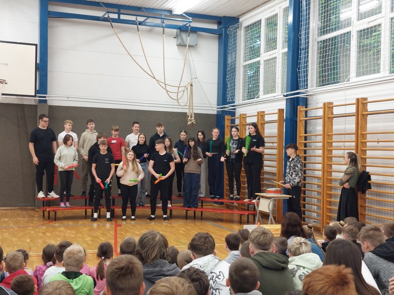 V petek, 25. 4. 2025, smo obeležili dva zelo pomembna prihajajoča praznika – dan upora proti okupatorju in praznik dela. Na proslavi so se zvrstile raznolike točke, ki so jih pripravili učenci in učitelji naše šole. Kulturni program je bil obarvan s pesmijo, plesom, dramskim prizorom (skečem), recitacijo in krajšim filmčkom.